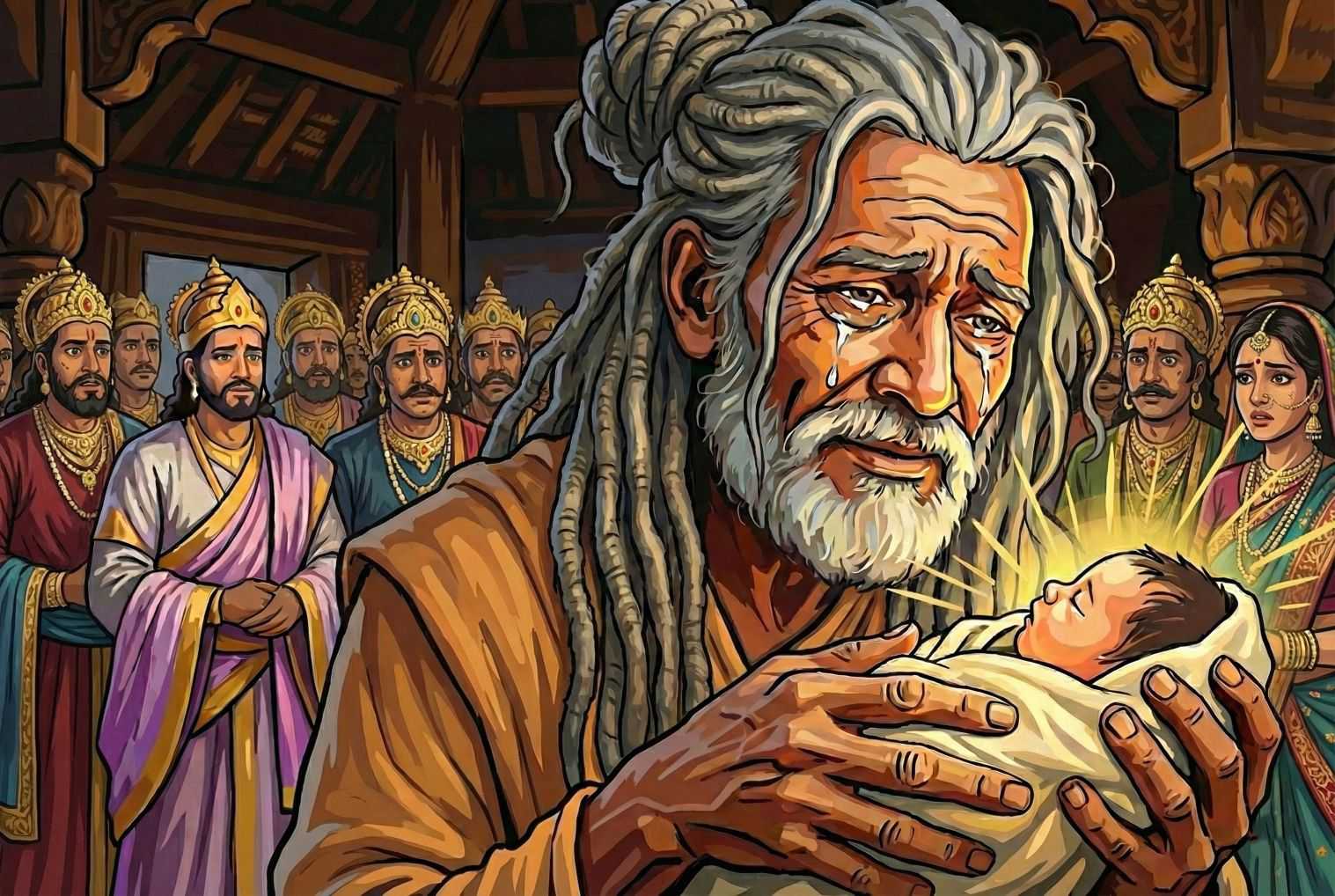 जब उन्होंने उस नवजात शिशु को देखा, तो उनकी आँखों से आँसू बह निकले। यह देख राजा शुद्धोधन घबरा गए—कहीं राजकुमार के भविष्य पर कोई संकट तो नहीं?
