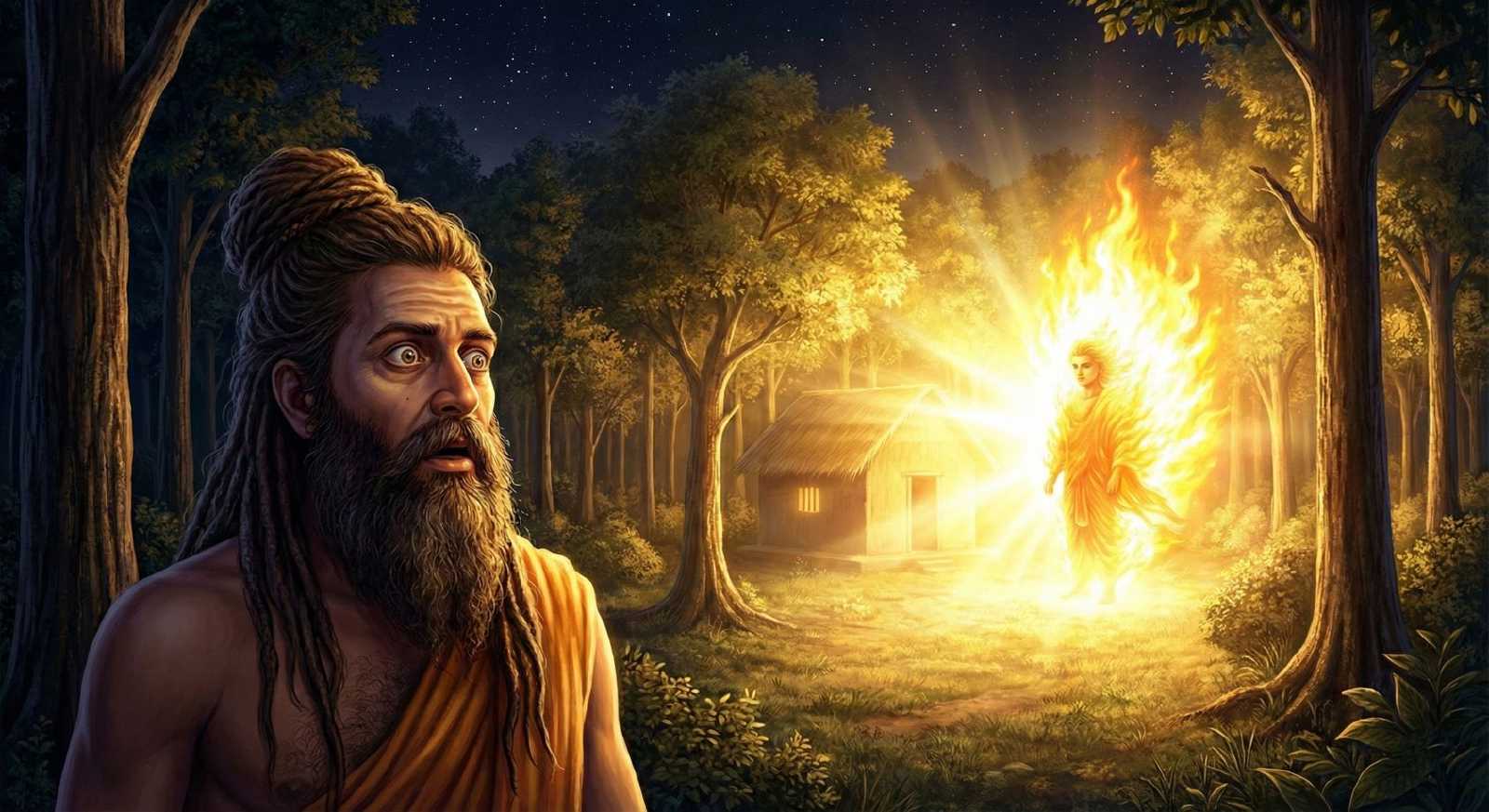 भगवान सीधे ‘शेर की मांद’ में घुसते हैं। वे कश्यप के आश्रम में जाकर रहने के लिए ऐसी जगह माँगते हैं जहाँ मौत का साया था—‘अग्निगार’, जहाँ एक भयानक नागराज रहता था। कश्यप ने चेतावनी दी, लेकिन भगवान की योजना कुछ और ही थी।