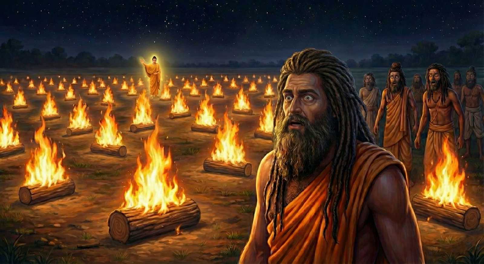 तीस रईस युवाओं को दीक्षा देने के बाद, अब भगवान का सामना उस समय के सबसे बड़े और प्रभावशाली सामुदायिक ‘गढ़’ से होने वाला था। उरुवेला में तीन प्रसिद्ध जटाधारी भाई रहते थे—उरुवेल कश्यप, नदी कश्यप और गया कश्यप। ये अग्नि-पूजक थे और १,००० शिष्यों की विशाल जटाधारियों का नेतृत्व करते थे।