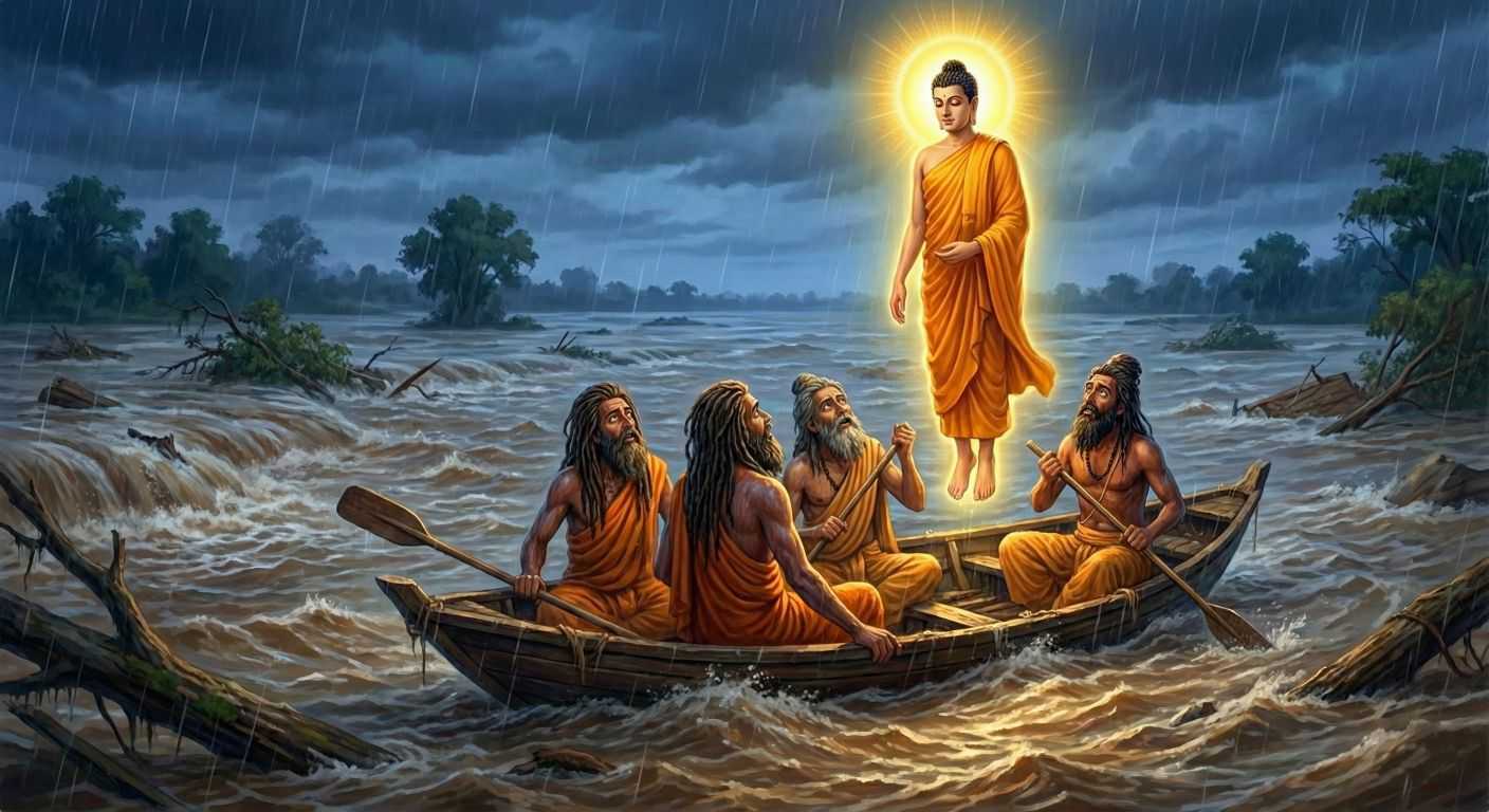 अभी हमने उरुवेल कश्यप को देखा था। कश्यप को झुकाने के लिए भगवान को ३,५०० चमत्कार दिखाने पड़े, नागों का दमन करना पड़ा और अंत में कठोर शब्दों में फटकारना पड़ा। क्योंकि कश्यप के भीतर अहंकार की एक मोटी दीवार थी।